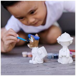 3 figurinhas de resina de filhotes da Patrulha Canina Chase, Marshall e Skye para decorar com tinta e adesivos O kit de artesanato com tudo incluído inclui 12 potes de tinta colorida, 3 pincéis, 3 folhas de adesivos de alumínio para adicionar detalhes Artesanato criativo perfeito para dias chuvosos ou como atividade de festa A Patrulha Canina está sempre pronta para ajudar, inspirando pré escolares com uma mistura de trabalho em equipe, aventura e humor à medida que desenvolvem habilidades sociais, emocionais e de desenvolvimento por meio de brincadeiras É um ótimo presente para crianças de 6 a 8 anos, para brincadeiras práticas e sem tela Marca: Não Informado