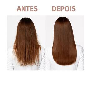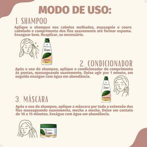Condicionador: Após o uso do shampoo, aplique o condicionador do comprimento às pontas, massageando suavemente. Deixe agir por 1 minuto, em seguida enxágue com água em abundância.