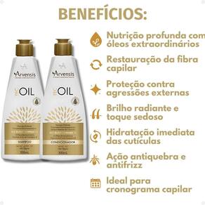 O Kit Arvensis Tec Oil é a escolha ideal para quem busca uma rotina de cuidados capilares eficaz, nutritiva e livre de agressões. Composto por Shampoo e Condicionador de 300ml cada, o kit combina tecnologia de tratamento com o poder dos óleos nobres de Argan, Ojon e Macadâmia, que promovem uma transformação visível nos cabelos desde a primeira aplicação. A fórmula rica em ativos naturais penetra na fibra capilar para hidratar, restaurar, fortalecer e dar brilho, enquanto limpa suavemente sem agredir os fios ou o couro cabeludo. Indicado para cabelos secos, danificados, com frizz ou quimicamente tratados, esse duo é perfeito para uso diário, oferecendo leveza, maciez e proteção contínua.