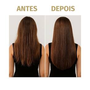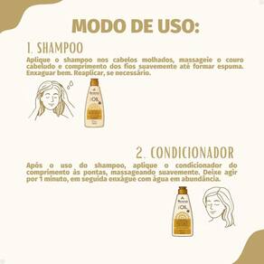 Condicionador: Após o uso do shampoo, aplique o condicionador do comprimento às pontas, massageando suavemente. Deixe agir por 1 minuto, em seguida enxágue com água em abundância.