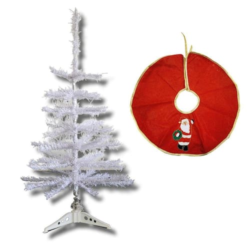 Kit árvore de natal 60 cm branca 50 galhos com tapete base para decoração