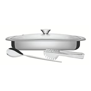 Beleza e praticidade na mesa. O Kit para Assar e Servir Tramontina Cosmos em Aço Inox com Tampa de Vidro 3 Peças é ideal para assar e servir com elegância. Com peças feitas em aço inox, mantêm suas características autênticos, preservando a beleza, a higiene e a durabilidade do material. Com design moderno proporciona requinte ao compor a mesa e a tampa de vidro transparente que permite a visualização dos alimentos. A Linha Cosmos é feita para cozinhar com amor e beleza.