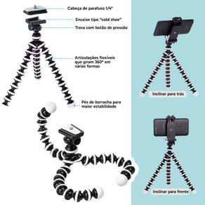Tripé: Rotação 360° e sapata para parafuso de 1/4"