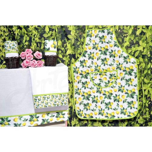 Kit Avental de Cozinha e Pano de Prato 5 Peças - Limão Siciliano