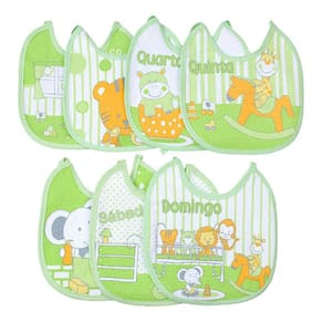 Itens: 7 Babadores Estampas variadas, sendo 1 para cada dia da semana