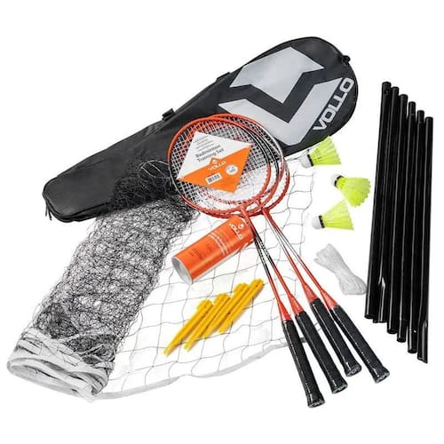 Kit Badminton Vollo 4 raquetes c/ suporte Strong Prático e completo,conta com a combinação de 4 resistentes raquetes de aço, 3 petecas de nylon (material leve e resistente), 1 jogo de rede (rede de postes), suporte e uma bolsa de transparência frontal para armazenamento. Garanta já o seu Kit e desenvolva suas melhores habilidades!