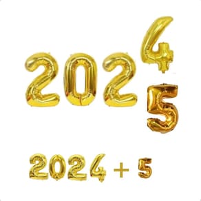 O kit contém: 5 balões metalizados que formam 2024 5 Altura de cada balão: 40cm