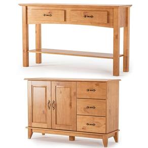 Madeira de Pinus de ReflorestamentoO Balcão Buffet 2 Portas e Aparador 2 Gavetas 100% Madeira Mirella é a escolha perfeita para quem deseja unir organização e requinte em um único conjunto. Produzido em madeira maciça, ele oferece alta resistência, durabilidade e um acabamento impecável que traz mais charme ao ambiente.