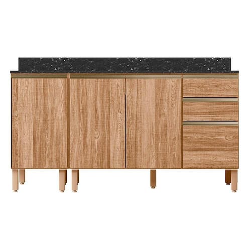 Kit Balcão Com Tampo - Linha Kali Premium 100% MDF, acabamento refinado e visual sofisticado, com estrutura em 100% MDF de 15mm, acabamento em pintura UV. Composto por portas 3 articuladas com dobradiças metálicas de 35mm com amortecedor, 3 gavetas com corrediças telescópicas que proporcionam um deslize leve e suave, prateleiras internas, puxadores perfil em alumínio na cor bronze garantindo um visual ainda mais sofisticado, tampos em MDF de 15mm na cor Ônix HD, acompanha pés com 16,5 cm de altura com mais 1,5 cm de regulagem. Estes itens são módulos da Composição Cozinha Modulada Kali Premium, confira em nosso site outros módulos desta linha, você pode compor sua cozinha da forma que desejar e fazer diversas combinações. Estes móveis chegarão em sua casa separados em 6 volumes.