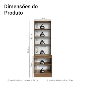 - 52 cm de profundidade no balcão e 31 cm na cristaleira