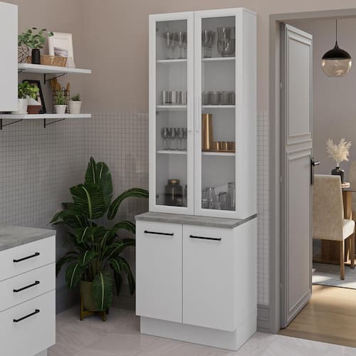 - A cristaleira não acompanha pés nem kit para suspender na parede. Deve ser instalada sobre o balcão e fixada na parede.