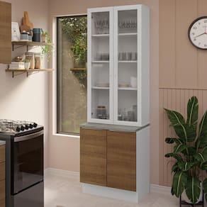 Muito elegante, a cristaleira possui duas portas de vidro e amplo espaço interno para acomodar louças, copos e outros itens de forma organizada.