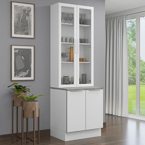 - A cristaleira não acompanha pés nem kit para suspender na parede. Deve ser instalada sobre o balcão e fixada na parede.