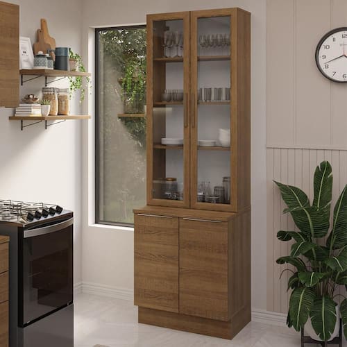 COR: Marrom | Garantia: 3 meses contra defeitos de fabricação | Dimensões - Altura: 225 cm | Dimensões - Largura: 70 cm | Dimensões - Profundidade: 52 cm | Peso aproximado: 63 kg | Produto: Cozinha Compacta | Marca: Madesa | Material: MDP | RBN: Casa/Móveis/Móveis de Cozinha/Móveis de Cozinha Compacta | Conteúdo da embalagem: Uma Cozinha Compacta | Instruções/Cuidados: Utilize um pano limpo, levemente umedecido e seque em seguida a superfície. Não usar produtos químicos ou abrasivos para a limpeza. Recomendamos polir seu móvel com lustra-móveis duas a três vezes por ano. | Altura do Produto com Embalagem (cm): 31 | Largura Produto Com Embalagem (cm): 52.7 | Comprimento Produto Com Embalagem (cm): 158.19 | Peso Produto Com Embalagem (Kg): 62,94 | Produto precisa de Montagem?: Sim | Descrição do Tamanho: 225 cm x 70 cm x 52 cm | Estado de Origem: RS | Material para Filtro: MDP | Cômodo Indicado: Cozinha | Nome do Simples no Fornecedor: Kit Balcão + Cristaleira 70cm Rustic Stella Madesa 01 | Contato do Fabricante: contato@madesa.com | Fabricante: Madesa | Quantidade de caixas de embalagem: 5 | Quantidade de portas: 4 | Quantidade de gavetas: 0 | Tipo de móveis de cozinha: Cozinha compacta | Inclui tampo: Sim | Tipo de Pé: Regulável | Materiais do corpo: MDP Cor: Rustic