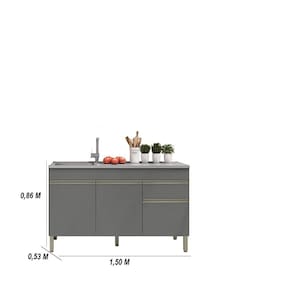 Material: MDP | Cor: Supremo/Supremo/CP-Freijó | Cômodo Indicado: Cozinha | Dimensões do Balcão (A X L X P): 86 x 150 x 53,3 | Dimensões do Aereo (A X L X P): 67 x 150 x 28,6 | Balcão Possui Prateleira: Sim | Aereo Possui Prateleira: Sim | Balcão Possui Gaveta: Sim | Aereo Possui Gaveta: Não | Tipo da Corrediça da Gaveta: Metálica | Possui portas: Sim | Quantidade de portas: 6 Portas | Tipo de Porta: Bater | Possui porta Basculante: Não | Possui Pistão á Gás: Não | Possui Nichos: Sim | Possui pés: Sim | Possui Vidro: não | Possui Tampo: Não | Peso do Produto (Kg): 64.599999999999994 | Altura do Produto (cm): 86 | Largura do Produto (cm): 150 | Comprimento do Produto (cm): 53 | Nome do Simples no Fornecedor: line | do Fabricante: 90 dias | Instruções/Cuidados: Evite com líquidos. Nada de lavar os móveis. Móveis não gostam de umidade. Não deixe o móvel exposto ao sol. Os acessórios também precisam de limpeza. | Precisa de Montagem: Sim, a montagem é simples mas sugerimos a contratação de algum experiente de sua preferência | Material da Estrutura: MDP | Necessita Fixação na Parede: Sim | Conteúdo Embalagem: Kit Balcão de Pia Sem Tampo e Aereo 1 Line | Origem: | Estado de Origem: Paraná | Quantidade de Volumes: 3 | Peso Bruto (volume 01): 37,15 | Comprimento x Largura x Altura (volume 01): 154 x 51 x 8,8 | Peso Bruto (volume 02): 1,75 | Comprimento x Largura x Altura (volume 02): 52,4 x 35,7 x 5 | Peso Bruto (volume 03): 25,7 | Comprimento x Largura x Altura (volume 03): 154 x 54 x 6,9 Cor: Gris/Gris/CP-Freijó