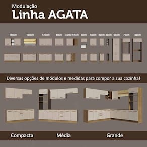 O balcão conta com duas portas com fechamento suave e puxadores com alça em alumínio. Acompanha ainda tampo resistente em MDP e os pés são reguláveis em PVC, com rodapé removível para facilitar a limpeza.