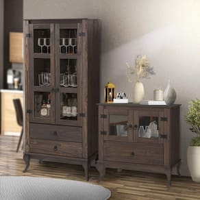 O balcão proporciona uma generosa área de trabalho e amplo armazenamento interno para seus utensílios de cozinha, enquanto a cristaleira exibe elegantemente sua coleção de louças finas ou objetos de valor sentimental. Feito com madeira maciça de imbuia, cada peça é uma obra-prima de durabilidade e elegância.