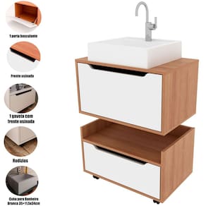 • Informações Adicionais: 1 gaveta com frente usinada/Acompanha rodízios/ Não acompanha torneira