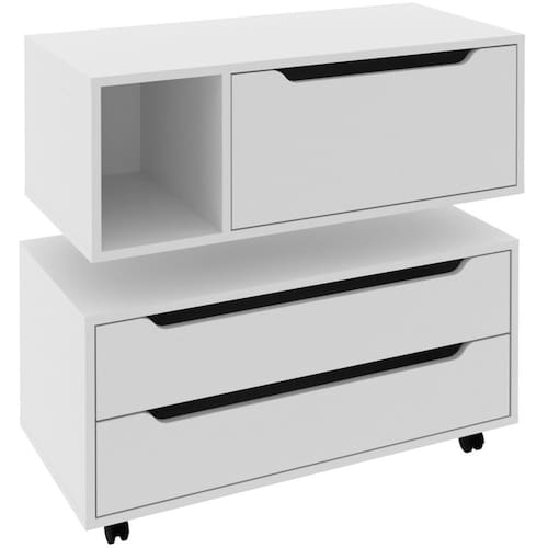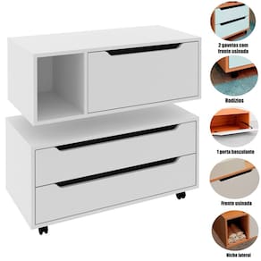 MDPO Kit Balcão e Gabinete de Banheiro é a opção ideal para quem deseja compor um ambiente funcional, prático e com design harmonioso. Composto por dois móveis complementares, um armário para gabinete com gavetas e rodízios e um armário suspenso com porta e nicho lateral, o kit oferece versatilidade e organização, adaptando-se perfeitamente a banheiros modernos e bem planejados.