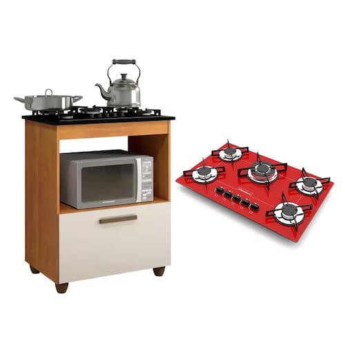 Conteúdo do Kit Cozinha: - 01 Balcão para Cooktop - 01 Fogão Cooktop 5 Bocas