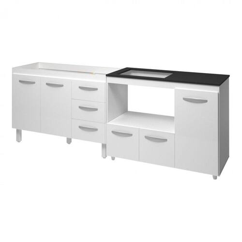 Características do kit montado: Largura 232 cm (lado a lado os dois balcões). Profundidade: 50 cm Altura: 85,5 cm (Altura do balcão para cooktop com tampo) *Imagem meramente ilustrativa, não acompanha objetos decorativos, é somente os dois balcões.