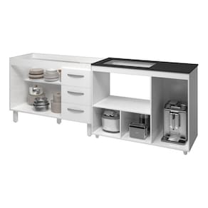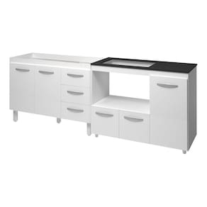 Características do kit montado: Largura 232 cm (lado a lado os dois balcões). Profundidade: 50 cm Altura: 85,5 cm (Altura do balcão para cooktop com tampo) *Imagem meramente ilustrativa, não acompanha objetos decorativos, é somente os dois balcões.