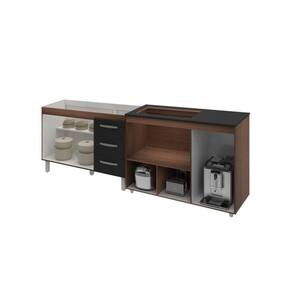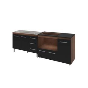 Características do kit montado: Largura 232 cm (lado a lado os dois balcões). Profundidade: 50 cm Altura: 85,5 cm (Altura do balcão para cooktop com tampo) *Imagem meramente ilustrativa, não acompanha objetos decorativos, é somente os dois balcões.