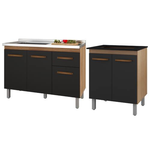 Kit balcão para pia 120 cm Anita + balcão para cooktop 5 bocas Jade. Estrutura em MDP.