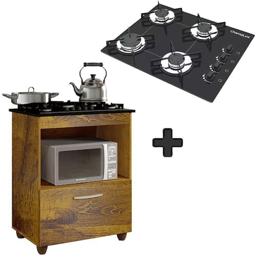 FOGÃO COOKTOP CHEF 4 BOCAS BIVOLT VIDRO TEMPERADO PRETO CHAMALUX Inovação e estilo com aproveitamento de espaço! Com design moderno e versatilidade, o Cooktop 5 bocas Chef é uma tendência para a decoração da sua cozinha, pois vai bem em qualquer espaço. Além de ser sinônimo de beleza, também é resistente e fácil de limpar.Mais segurança e facilidade de limpeza, sofisticação e requinte para a cozinha.Dimensões do produtoAltura: 10 CM Largura: 46 CMComprimento: 55 CMCor: PretoDimensões do EncaixeLargura: 36,5cmComprimento: 50 cmPrincipais características:Classificação AQueimadores esmaltados 04 queimadores semi rapido 1750wGrades esmaltadas com sistemas de encaixe, Mesa de vidro temperadoAcendimento inteligente Botões de facil manuseio Tensao BivoltGrades robustas esmaltadasDiscos esmaltadosProduto com design arrojadoCuidados: Evite a instalação e manuseio próximo do alcance de crianças.Evite a instalação próximo de geladeiras e freezers.Certifique-se de que a tomada está segura e apta para ser utilizada.BALCÃO PARA COOKTOP 04 BOCAS 1 PORTA BASCULANTE SALVIA KAIKIOtimize o espaço da sua cozinha utilizando o Balcão para Cooktop Salvia, pois ele conta com muito espaço para organizar os seus utensílios mais utilizados durante o dia. Dê um toque especial em sua cozinha com esse versátil e charmoso Balcão. Altura: 92cm Largura: 74cm Profundidade: 49cmMaterial Principal: MDP Acabamento: Pintura UV Escala de Brilho: Fosco Possui Portas: 1 Tipo de Porta: Basculante Material do Puxador: MDFPossui Prateleiras: 1 Possui Gavetas: Não Tipo de Corrediça: Não possui Possui Pés: 4 Espaço para cooktop:55,1 cm de largura 38cm de profundidade Cooktop incluso: Não Espaço para microondas:37cm de Altura e 67cm de largura Necessita Montagem: Sim Recomendações de Uso, Manutenção e Limpeza: Limpar com flanela limpa e seca.Não usar produtos abrasivos.Conteudo da embalagem: 01 cooktop 4 bocas.01 balcãoGarantia de 12 meses contra defeitos de fabricação.*Imagem meramente Ilustrativa.*Não nos responsabilizamos pela instalação deste produto.*Objetos de decoração das fotos nao estão inclusos.