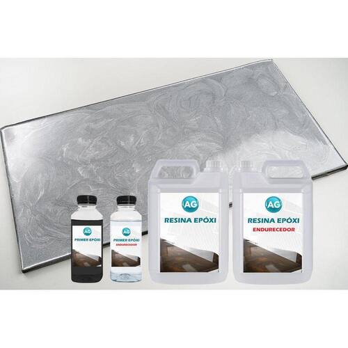 A Resina Epóxi de acabamento é composta por uma Resina Epóxi AG e um Endurecedor Epóxi AG. Misture 200g da Resina com 100g do Endurecedor até obter uma mistura homogênea. Essa resina será utilizada como o acabamento final, proporcionando uma proteção duradoura e um acabamento estético.