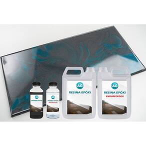 Para o acabamento final, utilizamos a Resina Epóxi AG, que deve ser misturada com o Endurecedor Epóxi AG. Aplique a resina epóxi de acabamento sobre a superfície preparada, utilizando uma espátula ou rolo de pintura. Espalhe a resina uniformemente, cobrindo toda a área desejada. Siga as instruções de aplicação específicas fornecidas no rótulo do produto para obter melhores resultados.