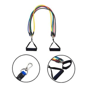 Kit tubing elástico 11 peças musculação treinamento funcional + mini band extra forte O pacote inclui: 1 elástico leve 1 elástico médio 1 elástico forte 1 elástico super forte 1 elástico extra forte 2 alças pegadores revestidos de espuma 2 tiras de tornozelos 1 ancora para travar na porta 1 bolsa de transporte em nylon Elásticos de duplo látex, é mais resistente e durabilidade Com este kit você faz praticamente todos exercícios que se faz numa academia, ótimo para iniciantes ou para suplementar os trabalhos já feitos em academia de pessoas com mais experiência. Alguns benefícios dos exercícios feitos com elásticos: A execução dos movimentos exige um maior reagrupamento de fibras musculares, o que resulta na queima de boa quantidade de calorias. Como todo exercício , auxilia na melhora do sistema circulatório, reduz os níveis de stress, melhora o sono e evita a obesidade. Gera fortalecimento muscular, tanto hipertrofia quanto maior resistência, resultando em consistentes melhoras no condicionamento físico e em maior resistência contra lesões. Os praticantes têm uma significativa melhora na coordenação motora, na mobilidade e apresentam maior flexibilidade. Pode ser utilizado para tratamentos físicos pós-cirúrgicos. Especificações: Elásticos feitos de borracha profissional látex de alta qualidade e resistência Cada elástico tem 1,20 mt de comprimento Facilmente você pode criar mais de 30 diferentes níveis de resistência, anexando 1, 2, 3, 4 ou 5 elásticos de uma vez. Perfeito para musculação, yoga e pilates etc