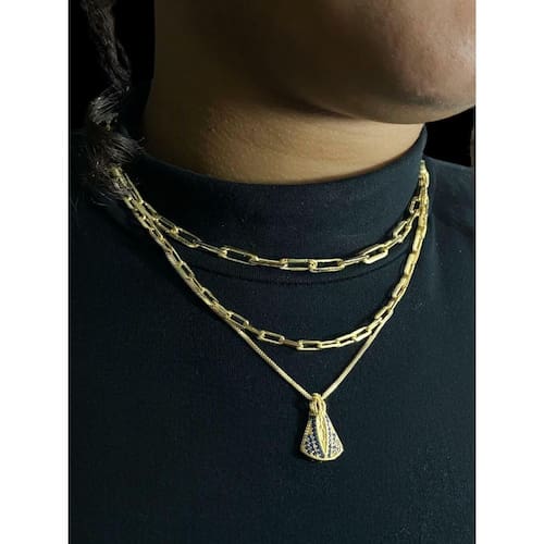 Kit Banhado: Cadeado Alongado + Cordão Santa Feminino Detalhes do Produto: Material: ligas metálicas de alta qualidade, especialmente tratadas para fixação e absorção do ouro, com acabamento em verniz protetor. Aparência: visual idêntico ao ouro maciço. Produção: artesanal, com atenção meticulosa aos detalhes. Banho: 10 camadas espessas de ouro 18k, finalizadas com verniz antialérgico . Elos: soldados varia conforme o modelo . Pedras: zircônias brilhantes cravejadas quando aplicável . Tamanhos Disponíveis: Cordões Masculinos: 70cm padrão e 60cm sob consulta/Pedido Via Chat . Cordões Femininos: 50cm padrão e 45cm sob consulta/Pedido Via Chat . Pulseiras: 21cm padrão ; tamanhos de 18cm a 23cm sob consulta/Pedido Via Chat. Pingentes: conforme imagens; consulte para mais detalhes via chat. Espessuras Recomendadas para Cordões / Pingentes: P: 1mm a 4mm M: 4mm a 8mm G: 6mm a 13mm Gg: 12mm a 18mm Incluso na Compra: Saquinho de organza para armazenamento seguro. Caixa elegante, perfeita para presente. Cupom de desconto para a próxima compra. Flyer com outros produtos da coleção. Carta de agradecimento personalizada. Adesivo da marca ToJoia18k. Informações Adicionais: : 6 meses termos acompanham o produto . Devolução: 7 dias para devolução sem questionamentos. Envio: despacho em até 24 horas úteis após confirmação do pagamento. Cuidados com a Peça: Evite contato com produtos químicos; aguarde o perfume secar antes de usar. Evite contato com shampoo, condicionadores e suor excessivo. Armazene em local seco, preferencialmente no saquinho de organza fornecido. Uso no mar e piscina é permitido; lave com água corrente e sabão neutro após. Por que Escolher a ToJoia18k Semi-joias luxuosas que combinam estilo, qualidade e sofisticação. Banho espesso de ouro 18k, garantindo brilho duradouro e acabamento impecável. Design exclusivo e produção artesanal, perfeitos para qualquer ocasião. Materiais premium que asseguram durabilidade. Ao escolher uma semi-joia ToJoia18k, você investe em qualidade, elegância e uma experiência única. Aguardamos sua compra Observação: pode ocorrer variação no fecho raramente . Imagens reais, sem edição. Qualquer dúvida, estamos à disposição para esclarecimentos. Marca: Tojoia18K