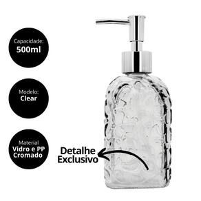 -02 unidades Porta Sabonete Líquido em vidro modelo Clear (bico dosador em plástico com revestimento cromado)