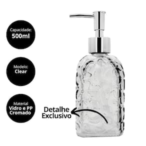 -02 unidades Porta Sabonete Líquido em vidro modelo Clear (bico dosador em plástico com revestimento cromado)