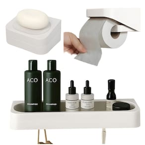 Kit Saboneteira + Suporte Papel Higiênico + Prateleira Porta Shampoo de Parede Com Adesivo Bege
