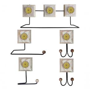 O kit possui 1 Toalheiro Grande + 1 Toalheiro para toalha de rosto + 2 Cabideiros de dois ganchos + 1 Porta Papel higiênico.