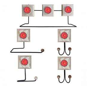 O kit possui 1 Toalheiro Grande + 1 Toalheiro para toalha de rosto + 2 Cabideiros de dois ganchos + 1 Porta Papel higiênico.