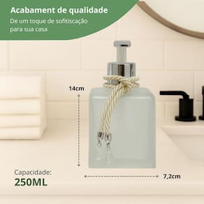 Kit Banheiro - Decoriatto O Kit Banheiro Decoriatto une elegância e praticidade para transformar banheiros e lavabos em ambientes sofisticados. Com frascos de vidro branco fosco, acabamento prime e detalhe em corda decorativa, o conjunto é disposto sobre uma bandeja espelhada e acompanhado de palavra decorativa e mini suculenta artificial, criando um visual moderno e harmonioso. Composição: 1 Frasco saboneteira de vidro branco fosco com tampa Prime 1 Frasco difusor de vidro branco fosco com tampa Prime e 3 varetas 1 Bandeja espelhada retangular. 1 Palavra decorativa. Diferenciais: Design sofisticado e atemporal. Ideal para decorar ou presentear. Materiais de alta qualidade. Marca: Não Informado