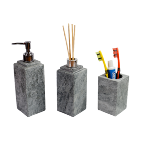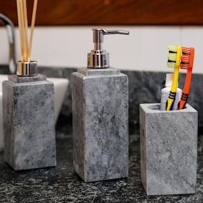 01 Porta Sabonete Líquido Dispenser em Pedra Sabão Prata 22x7cm.