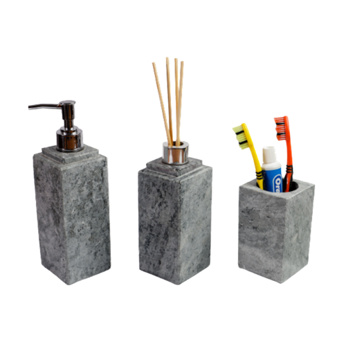 Kit Banheiro Bancada Lavabo Luxo em Pedra Sabão N01 Prata