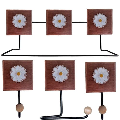 Kit Banheiro Com 2 Toalheiros + Porta Papel Higiênico + Toalheiro Rustico Artesanal Flores Coloridas 3d Cor Branco