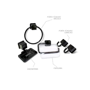 Kit Banheiro com 5 Peças Preto - Organização e Elegância Está em busca de uma solução prática e elegante para deixar seu banheiro mais organizado? O Kit Banheiro com 5 Peças é a escolha perfeita para quem deseja um ambiente organizado e sofisticado. Feito em polipropileno na cor preta, este kit possui excelente resistência e durabilidade, garantindo uma decoração duradoura e funcional. O conjunto inclui 1 saboneteira, 1 porta-toalhas argola, 2 porta-toalhas gancho simples e 1 papeleira, proporcionando tudo o que você precisa para manter seu banheiro organizado e com um visual elegante. Características técnicas: Material: Plástico resistente Fácil instalação Acompanha 5 parafusos e 5 buchas para fixação Conteúdo da embalagem: 01 Kit para Banheiro com 5 Peças na cor Preta Invista no Kit Banheiro com 5 Peças e transforme seu banheiro em um espaço organizado e sofisticado. Adquira o seu agora mesmo e desfrute de um ambiente mais agradável e funcional!