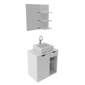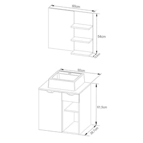 O Kit para Banheiro é a escolha ideal para transformar o seu espaço em um ambiente elegante e organizado. Com um design atual, ele oferece não apenas beleza, mas também funcionalidade, contribuindo para um banheiro agradável e útil. Produzido com materiais de alta qualidade, o kit garante durabilidade e resistência, criando um ambiente harmonioso e agradável para o seu dia a dia. CARACTERÍSTICAS TÉCNICAS: - Produzida em MDP de 15 mm - Acabamento UV na cor Branco - Acompanha Espelho - Cuba em Mármore Sintético - Balcão Suspenso - Porta com Dobradiça Metálica - Gaveta com Corrediça Metálica - Puxador tipo Cava - Possui 1 Prateleira *Kit Composto por Gabinete Suspenso (3605), Espelheira (3608) e Cuba (3630) INFORMAÇÕES TÉCNICAS: 3605: Alt. 61,5 cm x Larg. 60 cm x Prof. 38,7 x P. 16,25 3608: Alt. 54 cm x Larg. 60 cm x Prof. 15,6 cm x P. 6,2 cm 3630: Alt. 11,5 x Larg. 35 x Prof. 34 cm P. 5,5 kg INFORMAÇÕES ADICIONAIS: - ATENÇÃO: Não trabalhamos e não nos responsabilizamos pela montagem do móvel. Antes da montagem conferir se o produto está de acordo com o que comprou, produto montado e danificado pela montagem não será aceito troca. Montagem e instalação por conta do comprador. - As imagens ambientadas são meramente ilustrativas e podem apresentar itens que não compõe o produto. As cores do produto podem variar de acordo com o monitor, a iluminação do ambiente ou sua percepção visual. - Limpeza: Deve ser feita com pano macio e seco ou levemente. Não devem ser utilizados abrasivos como palha de aço e objetos cortantes. Garantia para defeitos de fabricação conforme Código de Defesa do Consumidor.