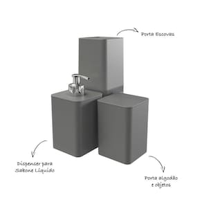 - Itens Inclusos: Porta algodão, Porta escova com tampa e Porta sabonete líquido