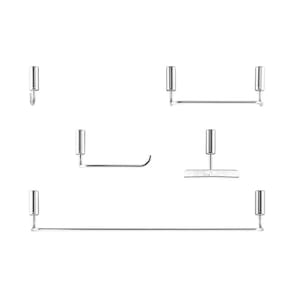 Conteúdo da embalagem: 1 porta toalha bastão 1 porta toalha rosto 1 cabide 1 papeleira 1 saboneteira de parede 14 parafusos 14 buchas