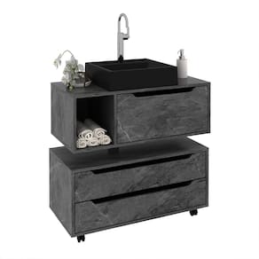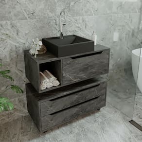 O Kit para Banheiro é a escolha ideal para dar um toque de elegância e organização ao seu espaço. Com um design contemporâneo, ele transforma o ambiente em um local mais convidativo e prático. Fabricado com materiais de alta qualidade, o kit oferece durabilidade e um visual sofisticado, tornando seu banheiro ainda mais funcional e bonito. CARACTERÍSTICAS TÉCNICAS: - Produzida em MDP de 15 mm - Acabamento UV na cor Mármore Lunar - Cuba em Mármore Sintético - Gaveteiro com Corrediças Metálicas e Rodízios - Porta Basculante com Articulador e Dobradiças Metálicas - Puxador tipo Cava - Balcão Suspenso *Kit Composto por Gabinete Suspenso (3644), Gaveteiro (3643) e Cuba (3630) INFORMAÇÕES TÉCNICAS: 3643: Alt. 38,8 cm x Larg. 80 cm x Prof. 38,7 Cm x P. 15,4 kg 3644: Alt. 38,8 cm x Larg. 80 cm x Prof. 38,7 cm x P. 11,2 kg 3600: Altura: 10 cm x Larg. 40 cm x Prof. 38 cm x P. 5 kg INFORMAÇÕES ADICIONAIS: - ATENÇÃO: Não trabalhamos e não nos responsabilizamos pela montagem do móvel. Antes da montagem conferir se o produto está de acordo com o que comprou, produto montado e danificado pela montagem não será aceito troca. Montagem e instalação por conta do comprador. - As imagens ambientadas são meramente ilustrativas e podem apresentar itens que não compõe o produto. As cores do produto podem variar de acordo com o monitor, a iluminação do ambiente ou sua percepção visual. - Limpeza: Deve ser feita com pano macio e seco ou levemente umedecido com água e sabão neutro. Não devem ser utilizados abrasivos como palha de aço e objetos cortantes. -Garantia para defeitos de fabricação conforme Código de Defesa do Consumidor.