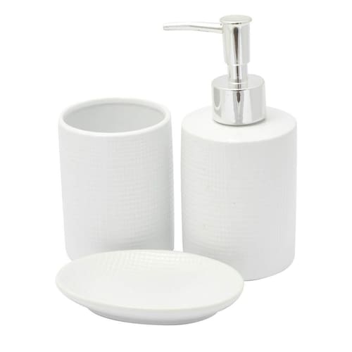 - 1 Porta sabonete líquido: 16 x 7 altura x diâmetro - 1 Porta escova: 9 x 7cm altura x diâmetro - 1 Porta sabonete em barra: 2 x 8,5 x 11cm altura x largura x comprimento Ean: 7899766703729