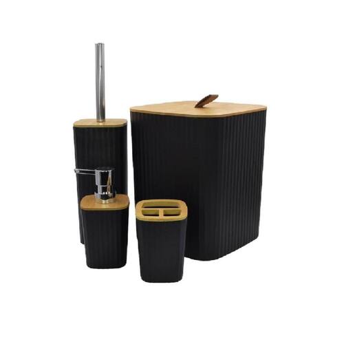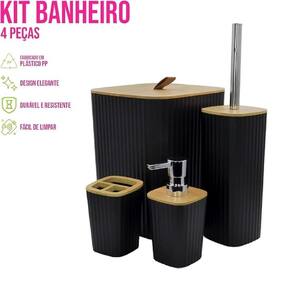 Kit Banheiro Lixeira Luxo 4 Peças Bambu Quadrado