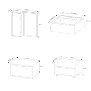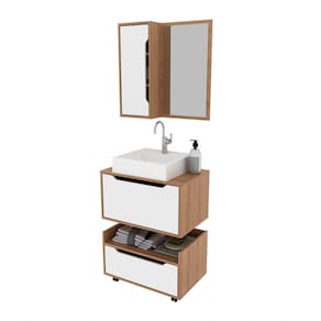 O Kit para Banheiro é a escolha ideal para dar um toque de elegância e organização ao seu espaço. Com um design contemporâneo, ele transforma o ambiente em um local mais convidativo e prático. Fabricado com materiais de alta qualidade, o kit oferece durabilidade e um visual sofisticado, tornando seu banheiro ainda mais funcional e bonito. CARACTERÍSTICAS TÉCNICAS: - Produzida em MDP de 15 mm - Acabamento UV na cor Amêndoa e Branco - Cuba em Mármore Sintético - Possui Espelho - Porta Basculante com Articulador e Dobradiças Metálicas - Puxador tipo Cava - Balcão Suspenso - Gaveteiro com Corrediças Metálicas e Rodízios *Kit Composto por Gabinete Suspenso (3646), Espelheira (6648), Gaveteiro (3647) e Cuba (3630) INFORMAÇÕES TÉCNICAS: 3646: Alt. 33 cm x Larg. 60 cm x Prof. 38,7 cm x P. 9,3 kg 3647: Alt. 37,7 cm x Larg. 60 cm x Prof.38,7 cm x P. 10,6 kg 3648: Alt. 60 cm x Larg. 60 cm x Prof. 15,6 cm x P. 11,35 kg 3630: Alt. 11,5 x Larg. 35 x Prof. 334 cm P. 5,5 kg INFORMAÇÕES ADICIONAIS: - ATENÇÃO: Não trabalhamos e não nos responsabilizamos pela montagem do móvel. Antes da montagem conferir se o produto está de acordo com o que comprou, produto montado e danificado pela montagem não será aceito troca. Montagem e instalação por conta do comprador. - As imagens ambientadas são meramente ilustrativas e podem apresentar itens que não compõe o produto. As cores do produto podem variar de acordo com o monitor, a iluminação do ambiente ou sua percepção visual. - Limpeza: Deve ser feita com pano macio e seco ou levemente umedecido com água e sabão neutro. Não devem ser utilizados abrasivos como palha de aço e objetos cortantes. -Garantia para defeitos de fabricação conforme Código de Defesa do Consumidor.